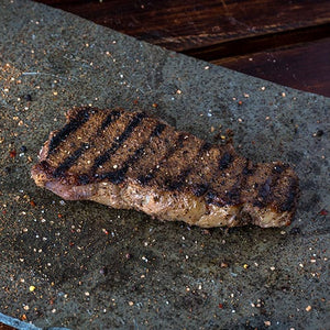 The 12oz NY Strip is a fantastic steak. The first question many people ask is, “how long should I cook it on each side?”….there is not a consistent answer to that question as there are MANY variables that effect cook time, from the steaks starting temp to the grill surface temp to the ambient temp in which the steak is being cooked. Beyond that, there is a simpler way that is more accurate. The internal temperature of the steak. The way the cooking heat is applied isn’t all that critical, cooking heat can be any variety of methods from a wood fire to a broiler to sous vide; there are MANY great methods to cook a steak. We personally prefer to cook our steaks “rare” and we typically remove larger steaks like the 12oz NY Strip from the heat source when the internal temperature reaches approximately 115-118F. The internal temperature will continue to coast up to somewhere in the 125-130F range. This “coast up” is why adequate “rest time” after cooking is so critical when it comes to cooking the perfect steak. The 12oz NY Strip is a snap to cook due to it’s thickness which doesn’t heat as rapidly as a thinner steak, thus increasing the amount of time to reach finishing temperature.