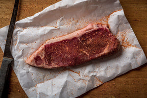 The 12oz NY Strip is hard to beat. It comes from the “loin” section of the beef and is a great combination of flavor, texture, tenderness and cook ability. NY Strip steaks are typically boneless, with the exception of its presence on the Porterhouse. The NY Strip will exhibit “marbling” similar to that of the Ribeye, which is what gives the steak it’s flavor and juicy nature. We cut our 12oz NY Strips to approximately 1-1.25” thick. All cattle vary in size so the thickness of the steaks will vary a degree from steak to steak based on the animal from which it came. Lots of folks ask us why our steak thickness varies, and the reason is that we cut our steaks to a specific weight, given the fact that all cattle are slightly different sizes, that means that the variation shows up in the thickness of the steak. If we cut all the steaks to the same thickness, then the weight of the steaks would vary….which would greatly complicate selling them online. All of our beef is “wet aged” which is a fairly common thing among beef producers. That said, we wet age our beef a minimum of 35 days, which is longer than much of our competition. This makes a difference in flavor and tenderness. The process of wet aging allows enzymes that are naturally present in beef to begin to break down and tenderize the beef. It has more effect on tenderness than it does flavor. Dry Aging, by comparison, is a much different process that relies on the same naturally occurring enzymes to tenderize the beef and dry aging also allows moisture to migrate out of the beef which tends to concentrate the flavor. Dry Aging is a process that is much more like aging artisanal cheese and tends to take on a stronger flavor that not all consumers enjoy. We’ve found “wet aging” for an extended period to be the best case scenario for us.