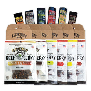 This package is perfect for hunters. It has plenty of jerky to fuel their outdoor adventures and the DIY Jerky Kits to cover at least one successful season of jerky making. Lucky® DIY Jerky Kits are the easiest and most convenient to use kits on the market…and getting a bag and beef stick of each of our commercial flavors - made with the exact same seasoning - will allow them to determine which flavor they prefer when it comes time to make jerky