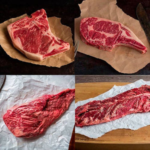 This bundle consists of 8 *Premium All Natural Angus cuts; two T-Bones, two Bone-In Ribeyes, two Tri-Tip roasts, and two Hanger Steaks.
