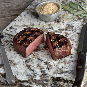 8oz Source Verified, Natural Wagyu Filet is the steak for meat eaters at the top of the food chain. This American style Kobe Filet is fit for a king; its rich flavor and buttery texture make this filet mignon a true masterpiece.This Source Verified, Natural Wagyu 8oz Filet is the pinnacle steak in the Nebraska Star Beef line. It has a very delicate texture and an heavenly taste that one must experience to believe. These steaks are cut to 1.5 to 1.75" thick and are best coated lightly with olive oil, then dusted with sea salt and fresh ground black pepper. Pan sear for 30 seconds per side on a red hot skillet, and finish on the grill - 8 minutes per side - or in the oven at 400F for 12 minutes to yield a perfect medium rare. NEVER THAW IN A MICROWAVE - this can damage the product. ALWAYS thaw slowly in the refrigerator or in a pan of cold water. DO NOT remove cryovac packaging until product has thawed completely.