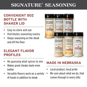 Get all 5 of our Signature® Seasonings & Rubs. Used in steakhouses across Nebraska and the Midwest for ultimate flavor.