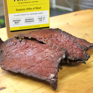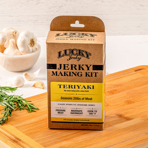 Lucky Beef Jerky “Seasoning & Cure Kits” are designed to transform jerky making into a simple & easy way to create a wholesome, premium meat snack. Simplicity, quality and ease of use was the main focus of our DIY kits. We set out to create a kit that is so easy to use that there’s no excuse not to make your own jerky. Our kits have enough seasoning and cure for 20 lbs of meat with everything portioned for 5 lb batches of jerky. The kits will make both slab style and ground and formed jerky. Its as easy as dissolving 1 packet of cure and 1 packet of seasoning into 1 cup of cold water. This marinade is then mixed with 5 lbs of lean meat - thin sliced for slab style jerky, or lean ground meat for ground and formed jerky. If you’re making slab jerky, let the meat soak in the marinade for 24-36 hours in the refrigerator. For ground and formed, just blend the marinade with 5 lbs of lean, ground meat until it becomes very sticky, then extrude onto drying racks and cook to perfection. Teriyaki flavor is a fairly delicate flavor with strong tones of soy sauce and just enough fine ground black pepper to make it interesting. This flavor is safe for all palates, including the sensitive ones.
